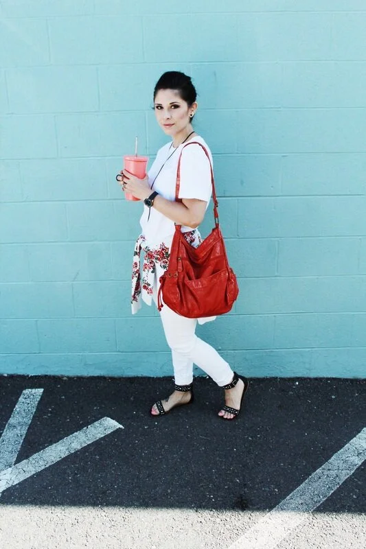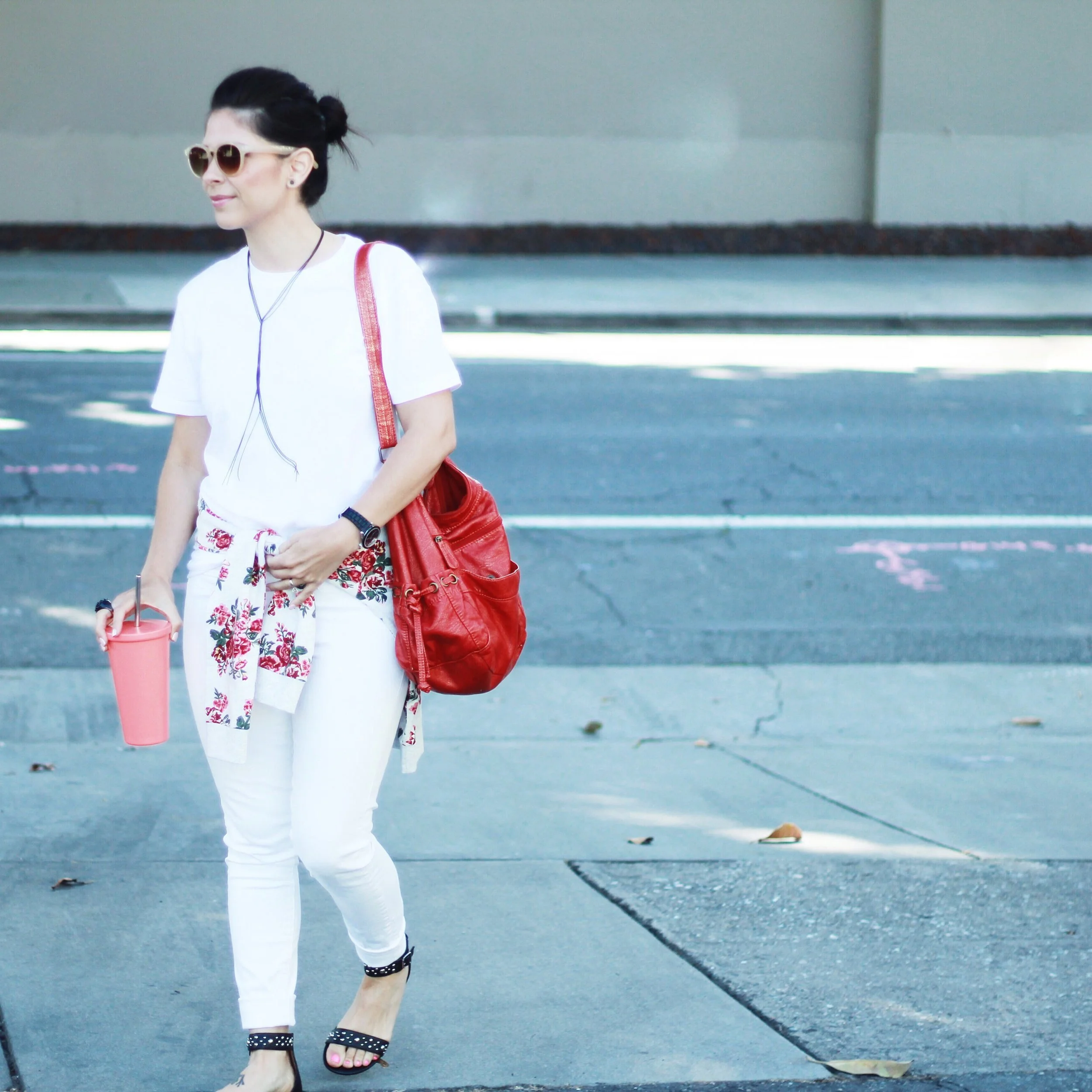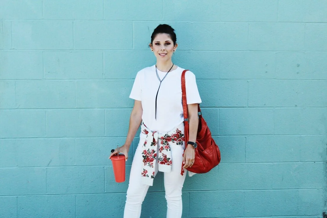 All White Spring Outfit With A Pop Of Color | Tangerine Orange